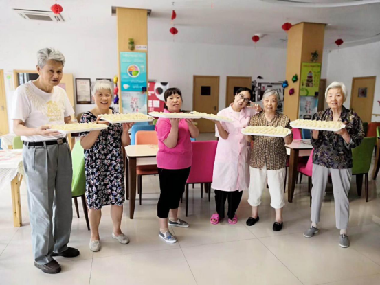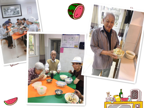 活動當天,金匱托老所內(nèi)的歡聲笑語不斷,而熱情高漲的人們并不是社區(qū)志愿者,而是我們老人自己,我們的三位老人、兩位社工,自發(fā)的組織起了為全院老人包餛飩送溫暖的活動。
