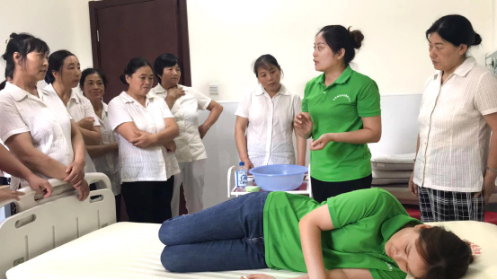 隨后的一堂實(shí)操護(hù)理課程,由總部的三位講師同臺(tái)講解,強(qiáng)化訓(xùn)練了日常護(hù)理照料、全背按摩、協(xié)助翻身側(cè)臥、床上梳頭等日常項(xiàng)目。結(jié)合理論與實(shí)操,分步驟傳授護(hù)理細(xì)節(jié)及經(jīng)驗(yàn)。張穎老師和項(xiàng)曉燕老師組織大家進(jìn)行換位互動(dòng),讓大家不僅作為“施行者”來(lái)進(jìn)行工作,更要作為“體驗(yàn)者”接受被服務(wù)的感覺。多年的服務(wù)經(jīng)驗(yàn),我們深以為然,做好護(hù)理就是熟能生巧,比高水平服務(wù)更 的,則是以人為本,這種 服務(wù)需要我們自己反復(fù)的去感同身受,換位思考。
